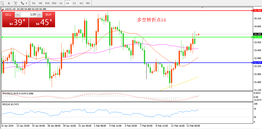 交易策略:在54.00之上看涨,目标57.00  60.00
