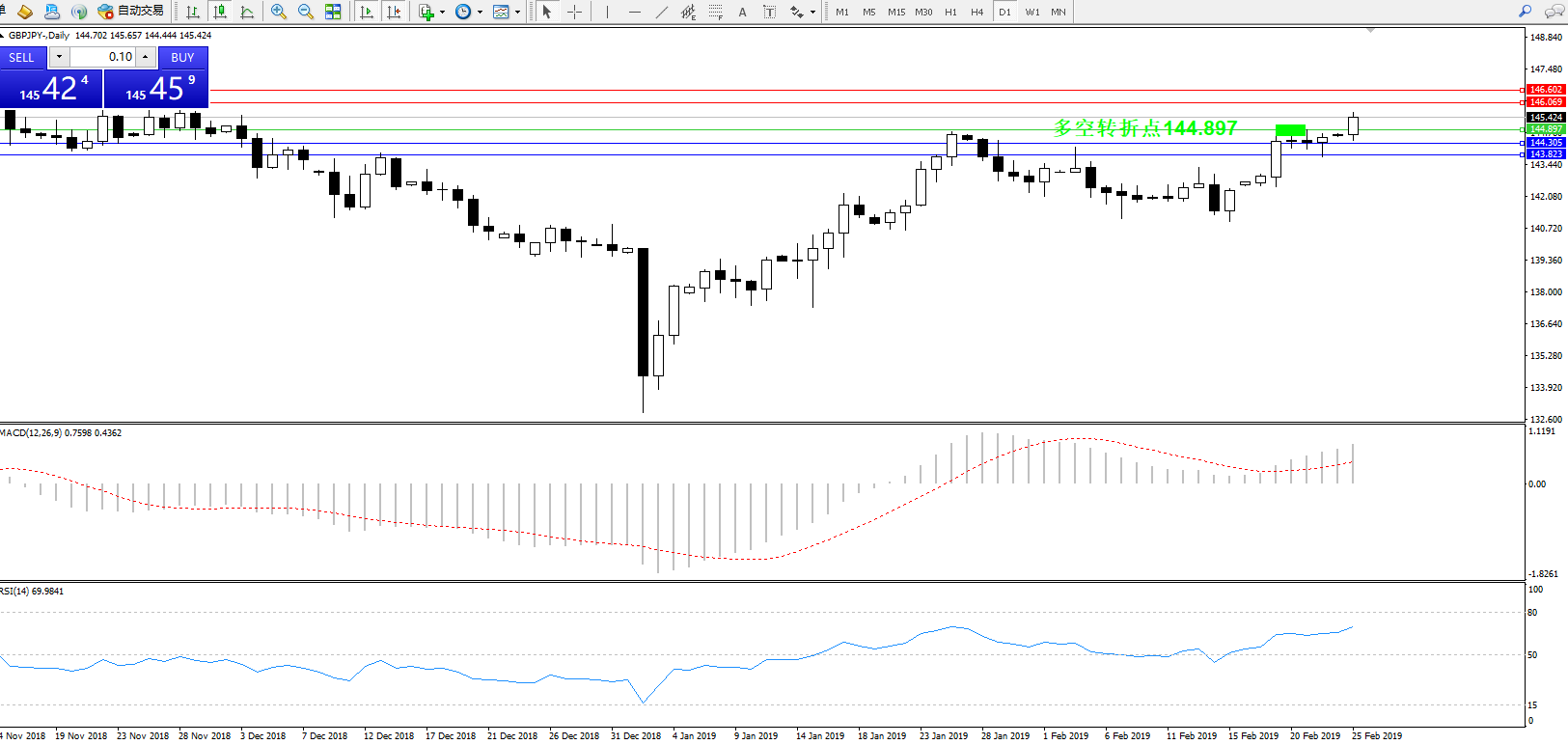 交易策略:144.897上方看涨,目标146.069146.602