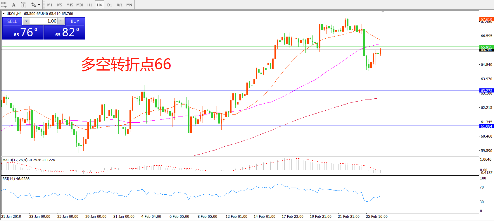 交易策略:在66.00之下看跌,目标61.00 58.00