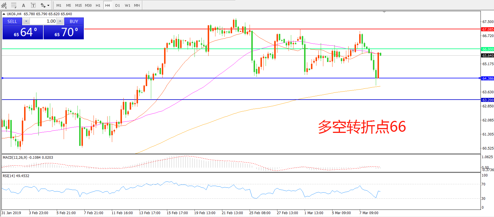交易策略:在66.00之下看跌,目标64.50    63.00