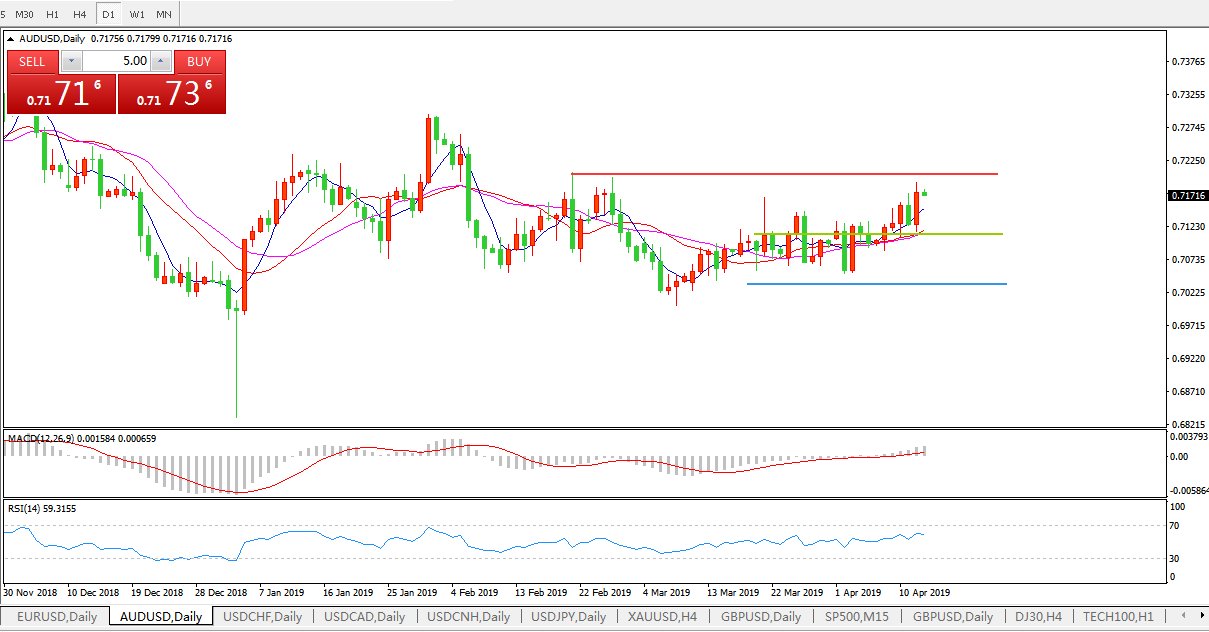 因美元走势疲软,商品货币出现了明显的回升,尽管周四因美元走强令商品货币回吐上一交易日所有的涨幅,但是周五因中国社融数据和贸易数据大好,商品货币再次收复失地并继续走高。3月中国社融和贸易数据大好说明中美贸易局势对于中国经济影响总体可控,同时制造业出现回暖的迹象,这和此前公布的3PMI数据吻合,缓解了市场对于中国经济放缓的忧虑情绪,而商品货币对于中国经济数据的敏感程度较高,因此推动了澳元和纽元的快速回升。