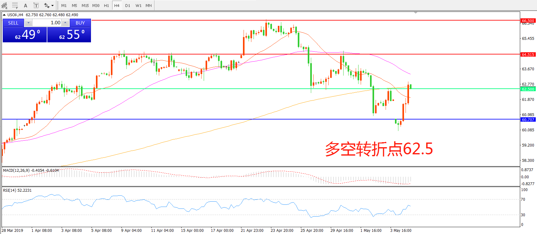 美油收回开盘大部分跌幅,并重新站上62.5一线的多空分水岭。