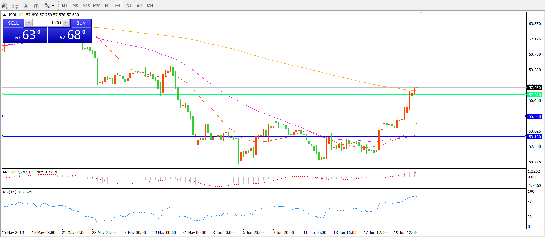 交易策略:在57.00之上看涨,目标59.00 61.50
