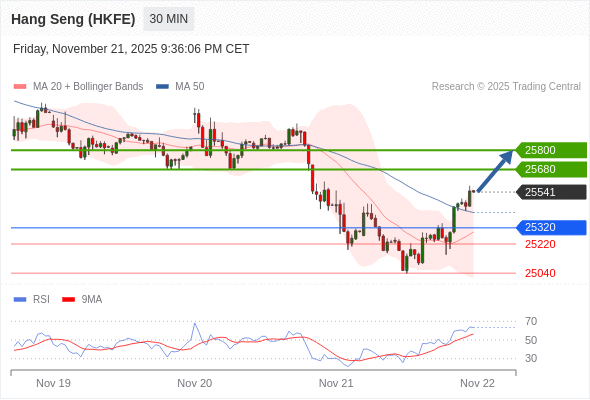 在 25320 之上,看涨,目标价位为 25680 ,然后为 25800 。