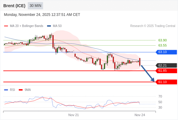在 63.10 之下,看跌,目标价位为 61.85 ,然后为 61.10 。
