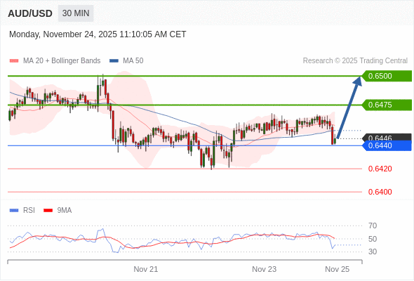 在 0.6440 之上,看涨,目标价位为 0.6475 ,然后为 0.6500 。