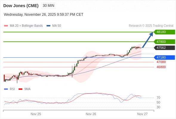 在 47180 之上,看涨,目标价位为 47800 ,然后为 48180 。
