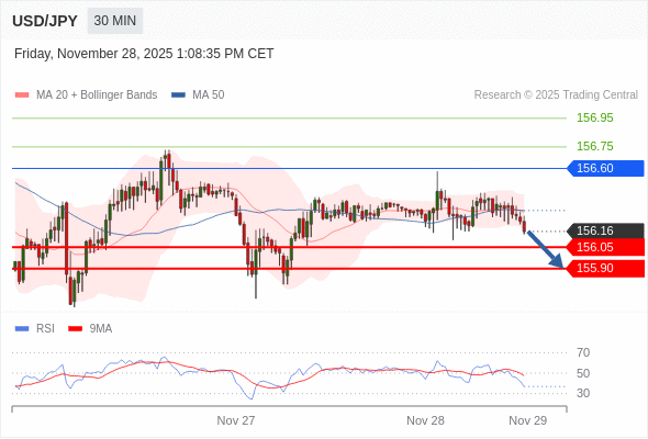在 156.60 之下,看跌,目标价位为 156.05 ,然后为 155.90 。