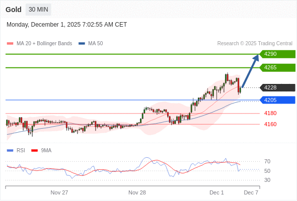 在 4205 之上,看涨,目标价位为 4265 ,然后为 4290 。