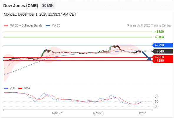 在 47790 之下,看跌,目标价位为 47310 ,然后为 47180 。