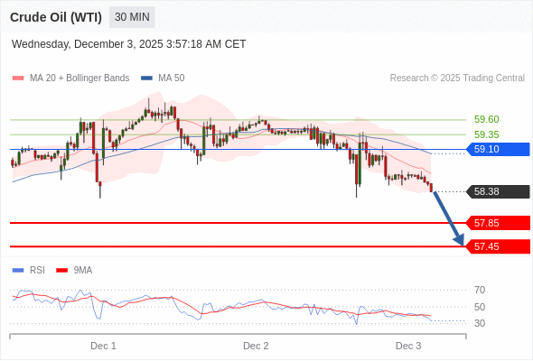 在 59.10 之下,看跌,目标价位为 57.85 ,然后为 57.45 。