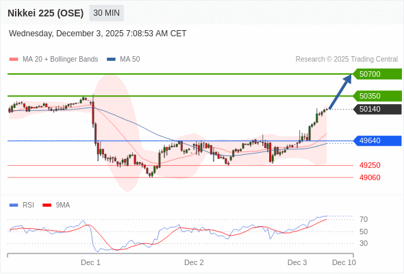 在 49640 之上,看涨,目标价位为 50350 ,然后为 50700 。