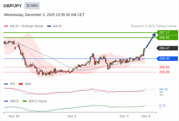 交易策略: 看涨,当 206.00 为支撑位。