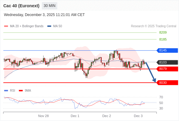在 8145 之下,看跌,目标价位为 8079 ,然后为 8030 。