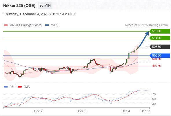 交易策略: 在 50350 之上,看涨,目标价位为 51400 ,然后为 51800 。