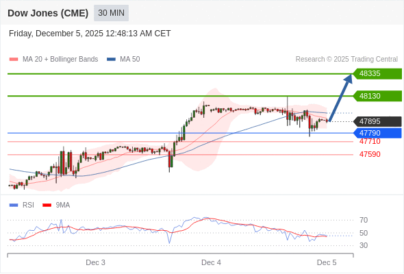 在 47790 之上,看涨,目标价位为 48130 ,然后为 48335 。