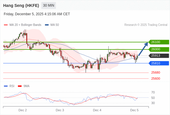 在 25810 之上,看涨,目标价位为 26000 ,然后为 26100 。