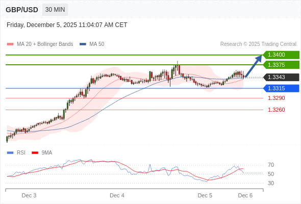 在 1.3315 之上,看涨,目标价位为 1.3375 ,然后为 1.3400 。