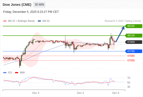 在 47790 之上,看涨,目标价位为 48130 ,然后为 48335 。