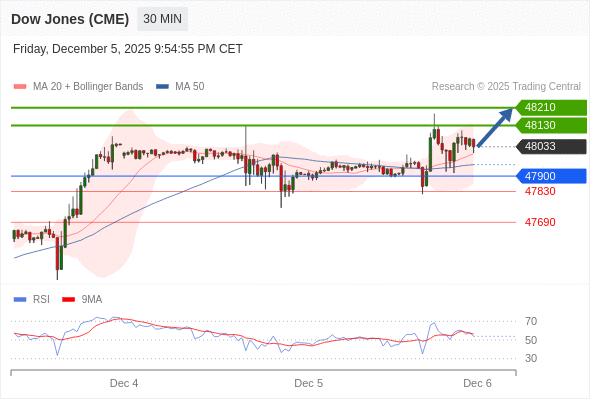 在 47900 之上,看涨,目标价位为 48130 ,然后为 48210 。