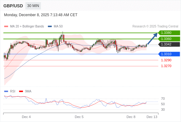 在 1.3310 之上,看涨,目标价位为 1.3360 ,然后为 1.3380 。