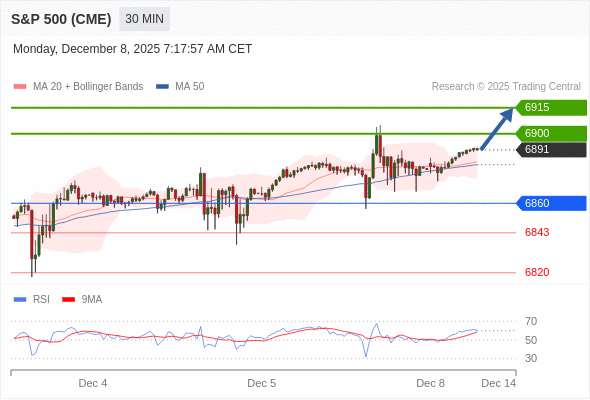 在 6860 之上,看涨,目标价位为 6900 ,然后为 6915 。