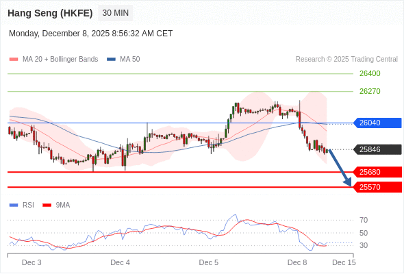 在 26040 之下,看跌,目标价位为 25680 ,然后为 25570 。