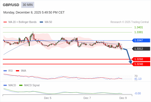 英镑/美元 当日内 : 看跌,在 1.3347 之下。