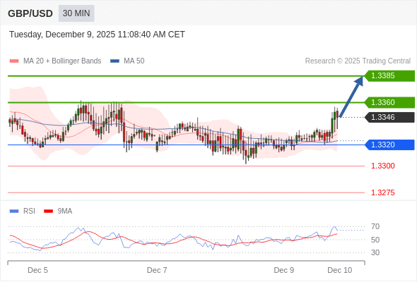 在 1.3320 之上,看涨,目标价位为 1.3360 ,然后为 1.3365 。