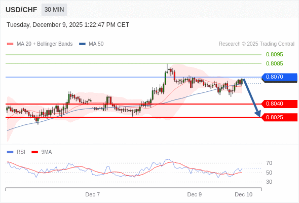 在 0.8070 之下,看跌,目标价位为 0.8040 ,然后为 0.8025 。