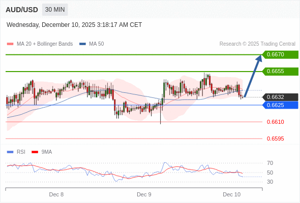在 0.6625 之上,看涨,目标价位为 0.6655 ,然后为 0.6670 。