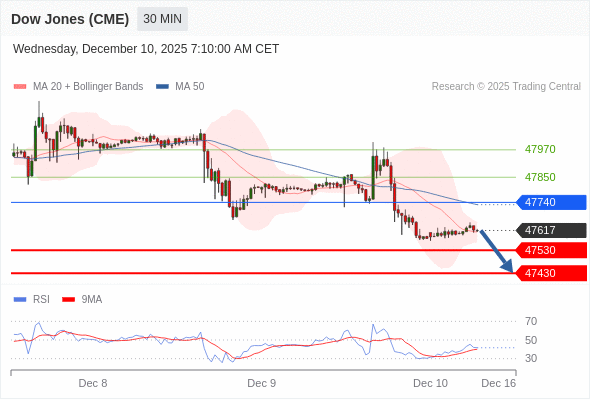 在 47740 之下,看跌,目标价位为 47530 ,然后为 47430 。