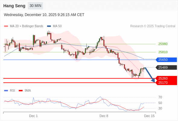 恒生指数 当日内: 期待25260。