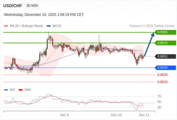 在 0.8035 之上,看涨,目标价位为 0.8070 ,然后为 0.8085 。