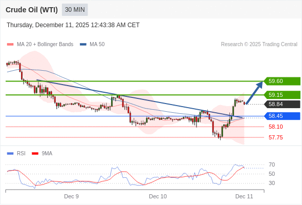 在 58.45 之上,看涨,目标价位为 59.15 ,然后为 59.60 。