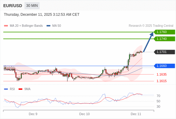 在 1.1660 之上,看涨,目标价位为 1.1740 ,然后为 1.1760 。