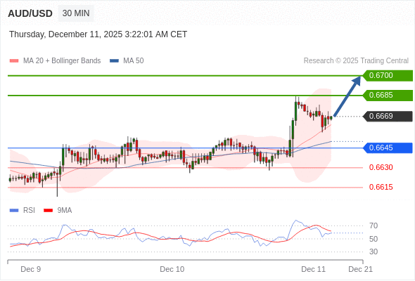 在 0.6645 之上,看涨,目标价位为 0.6685 ,然后为 0.6700 。