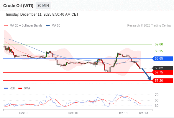 在 58.65 之下,看跌,目标价位为 57.75 ,然后为 57.20 。