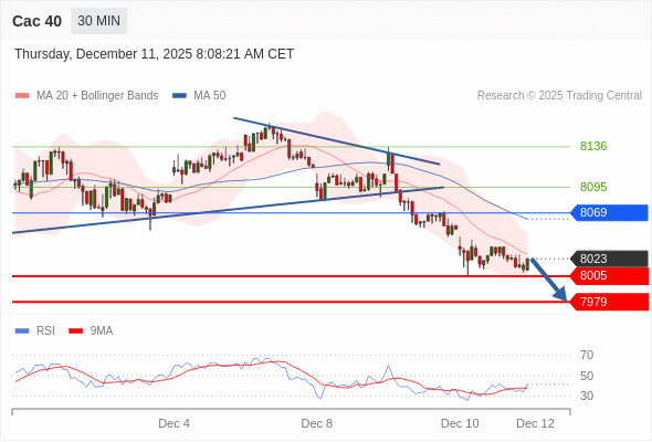 在 8069 之下,看跌,目标价位为 8005 ,然后为 7979 。