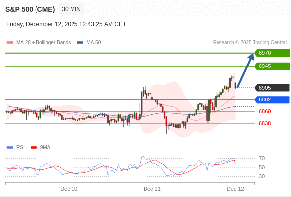 在 6882 之上,看涨,目标价位为 6945 ,然后为 6970 。