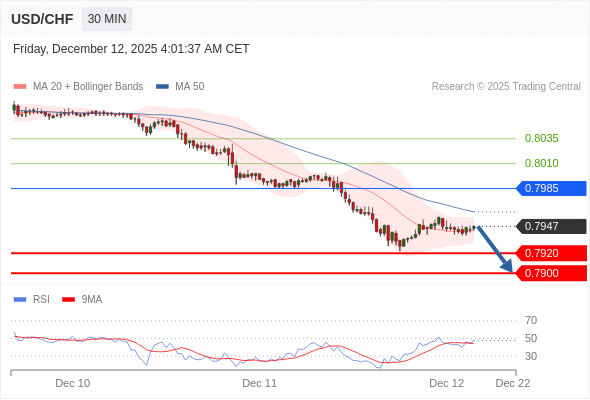 交易策略: 在 0.7985 之下,看跌,目标价位为 0.7920 ,然后为 0.7900 。