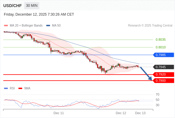 交易策略: 在 0.7985 之下,看跌,目标价位为 0.7920 ,然后为 0.7900 。