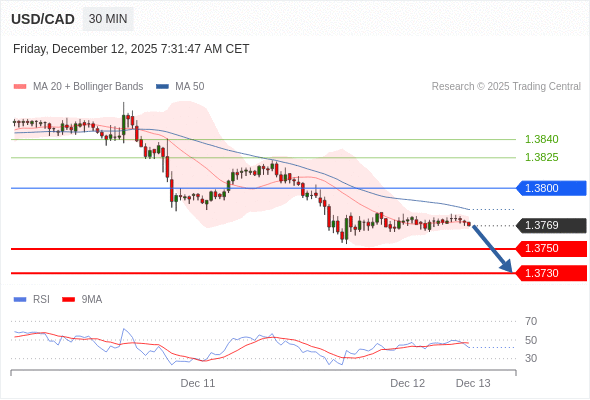 在 1.3800 之下,看跌,目标价位为 1.3750 ,然后为 1.3730 。