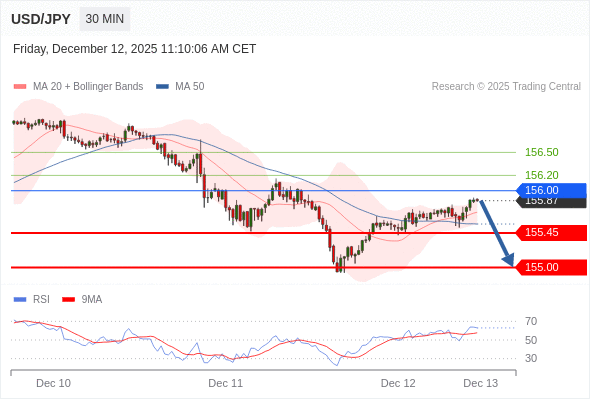交易策略: 在 156.00 之下,看跌,目标价位为 155.45 ,然后为 155.00 。