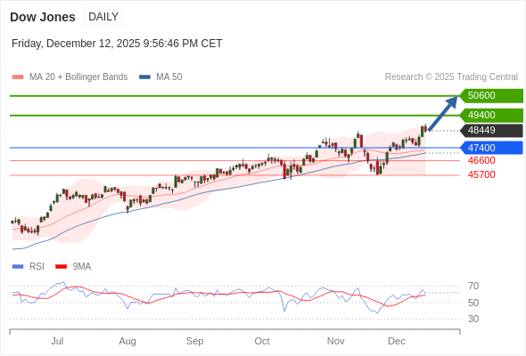 Dow Jones 短线: 在47400之上,看涨。