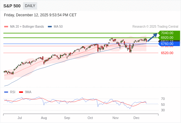 在 6760.00 之上,看涨,目标价位为 6920.00 ,然后为 7040.00 。