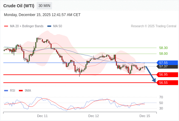 在 57.55 之下,看跌,目标价位为 56.95 ,然后为 56.55 。