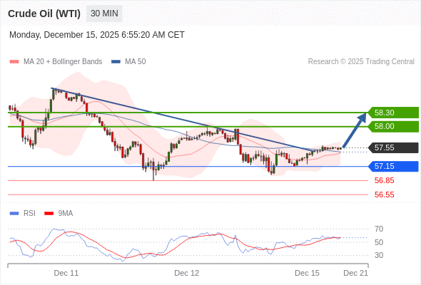 在 57.15 之上,看涨,目标价位为 58.00 ,然后为 58.30 。