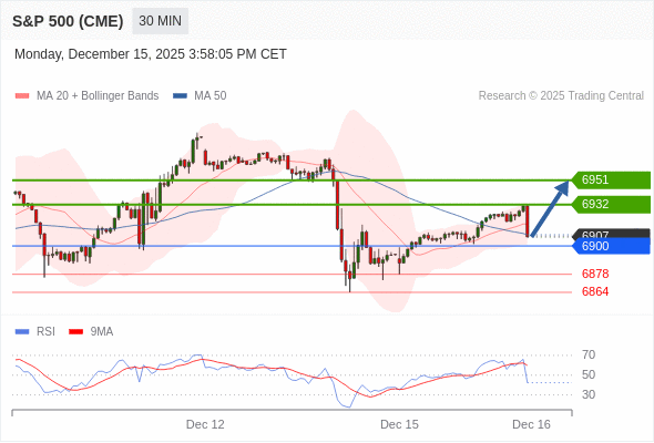 在 6900 之上,看涨,目标价位为 6932 ,然后为 6951 。
