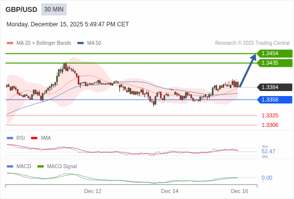 英镑/美元 当日内 : 看涨,当 1.3358 为支撑位。